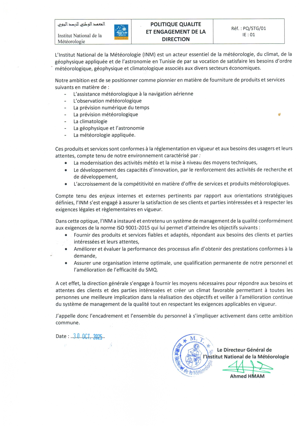The National Institute of Meteorology is certified for the second time ISO 9001 (2015 version) in the domain of Meteorological Assistance to Air Navigation